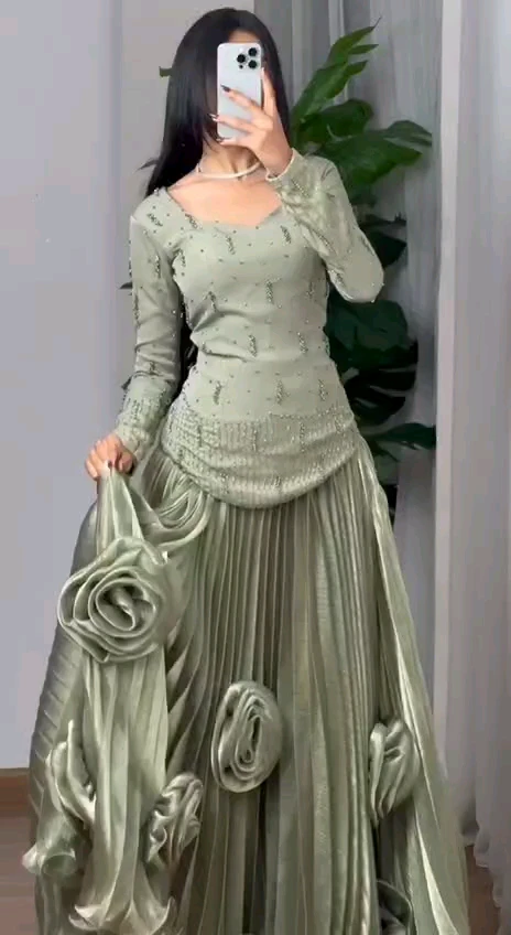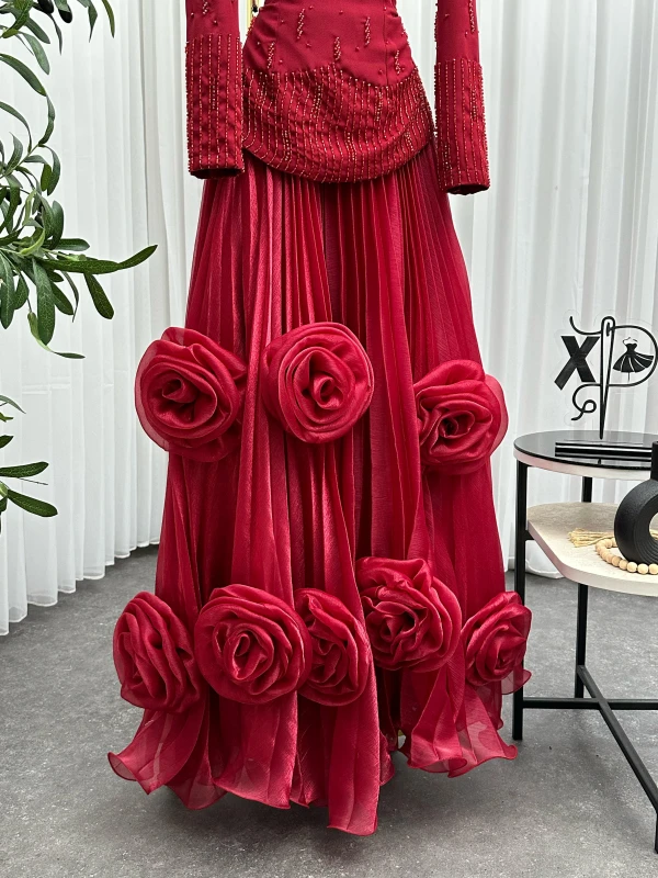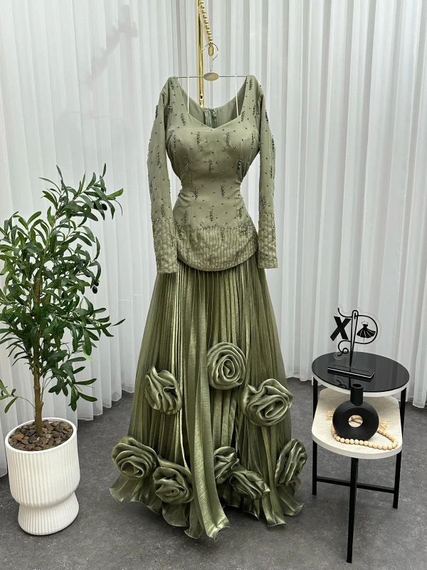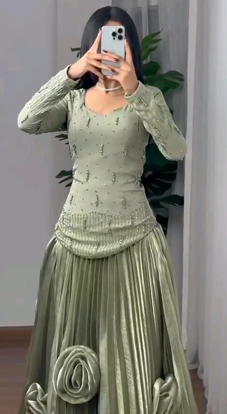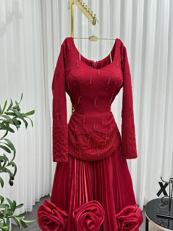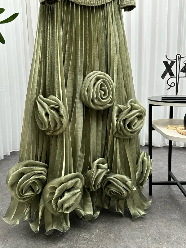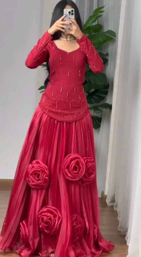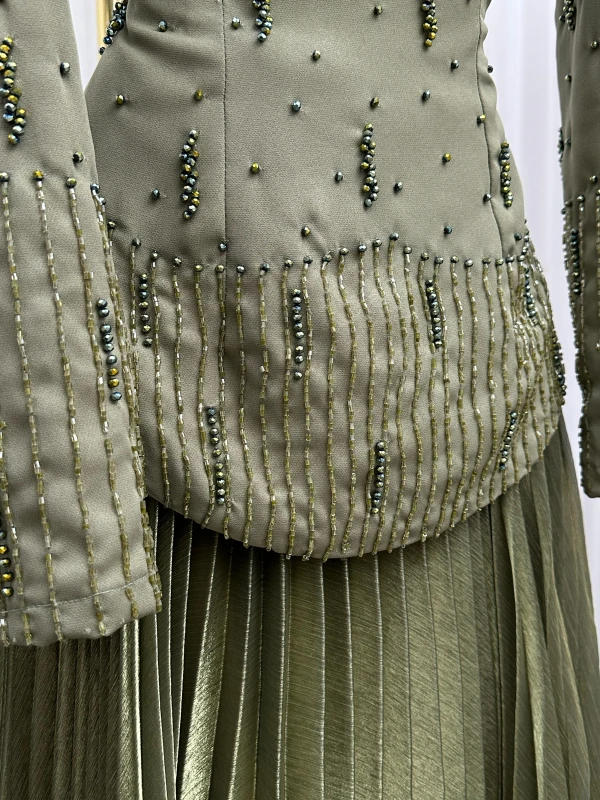 فستان اورجنزا لمعة الصدرية كريب باربي تطريز شك على القطعة