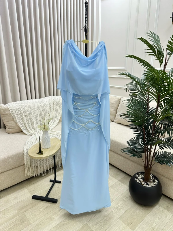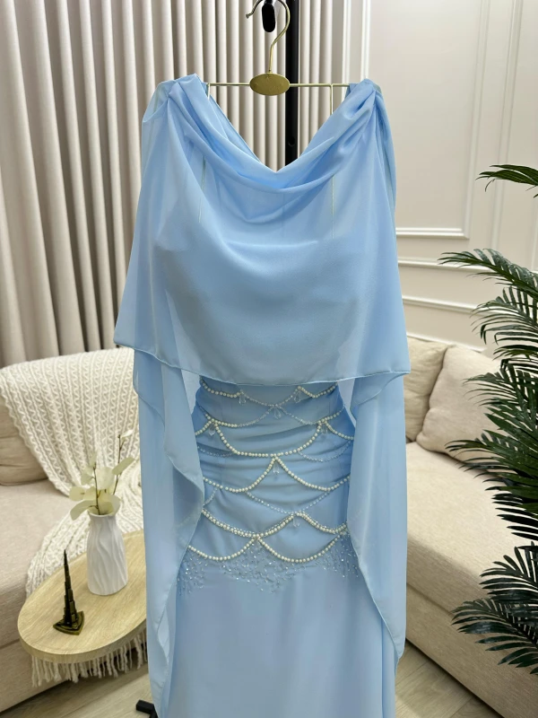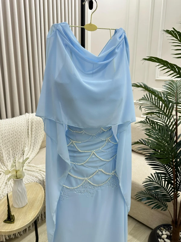 فستان سهرة جورجيت بطانة تفتة حرير +تطريز فصوص لولو خرز