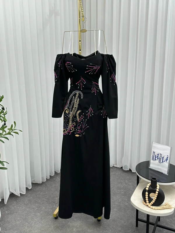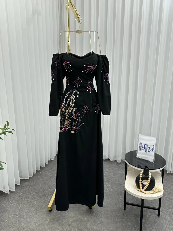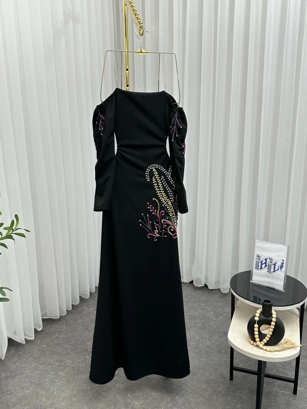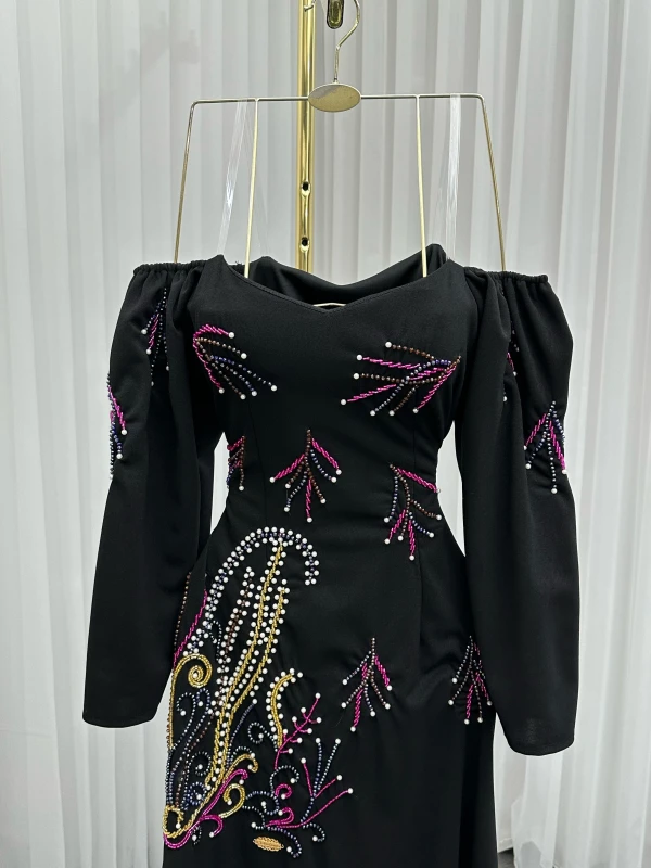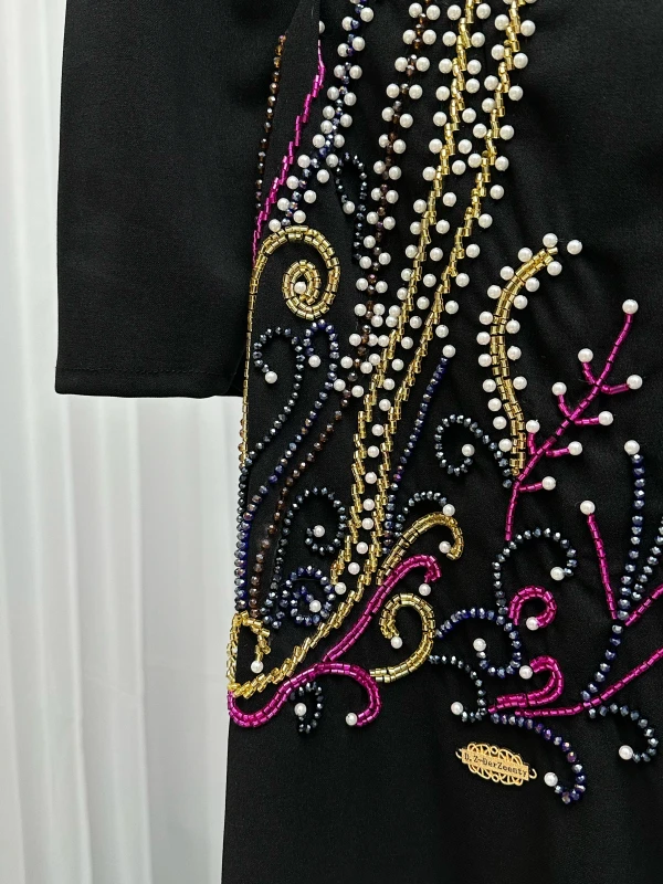 فستان كريب استرتش + تطريز يدوي أصلي