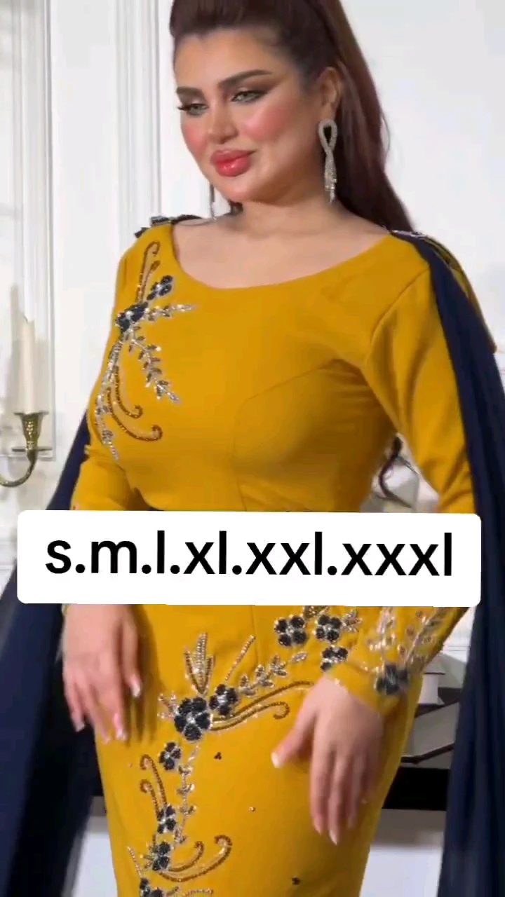 فستان كريب استرتش +تطريز يدوي +جورجيت