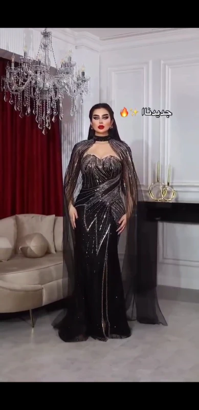 فستان لبانة استرتش مغطى بتل مطرز تطريز فخم وراقي
