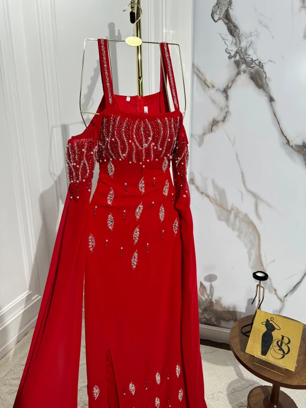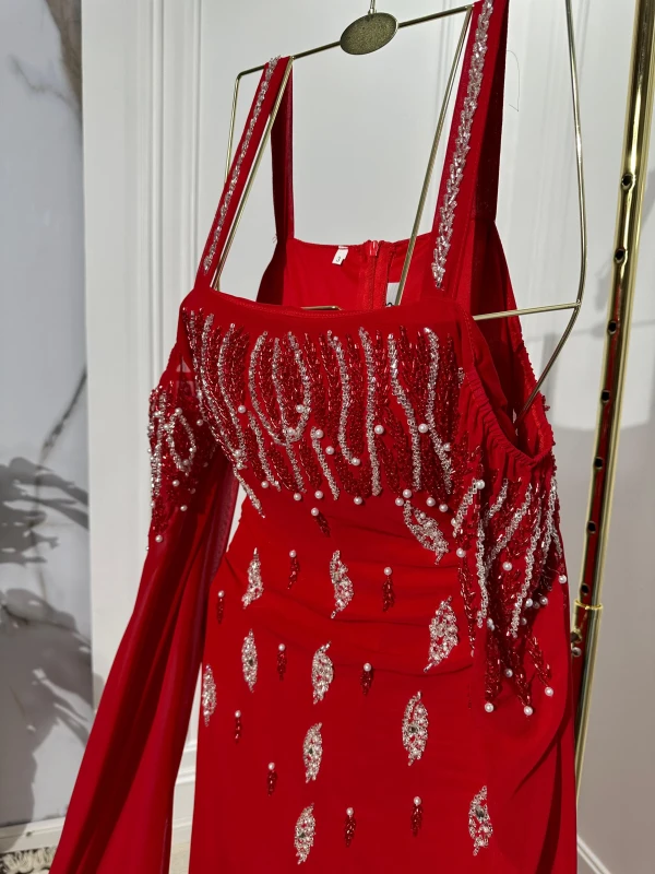 فستان شيفون جورجيت تطريز يدوي راقي على القماش فخم وراقي