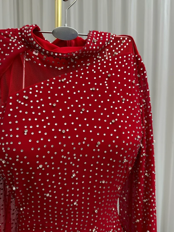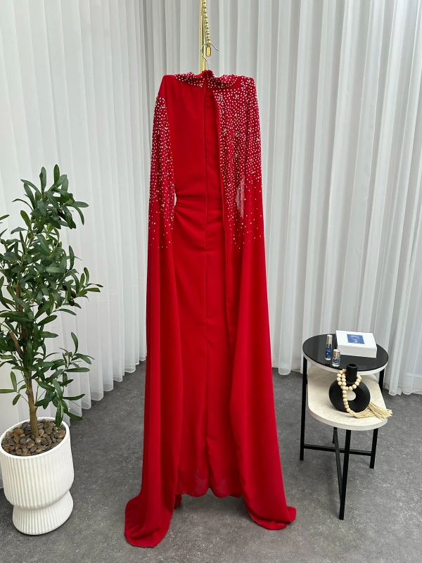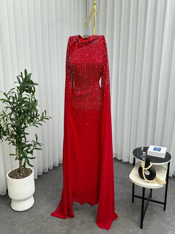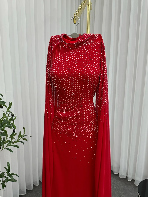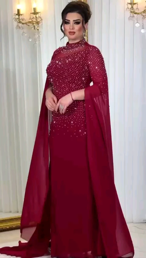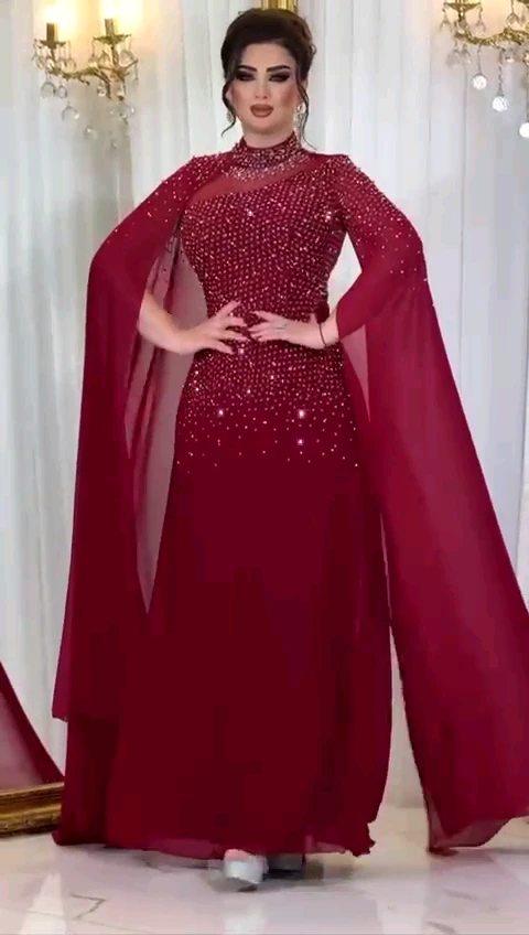 فستان شيفون تطريز فصوص فخم وراقي