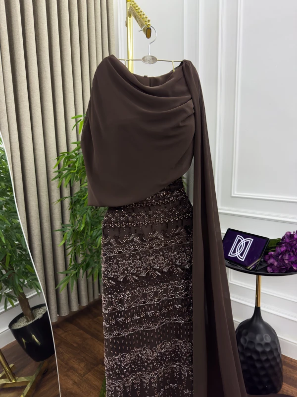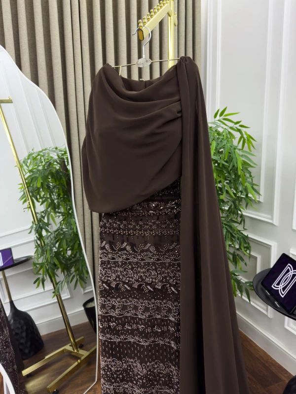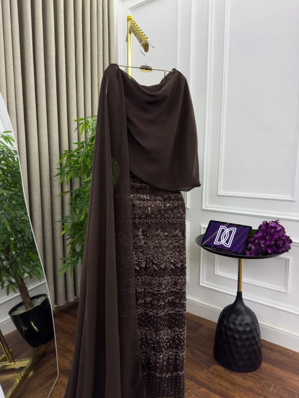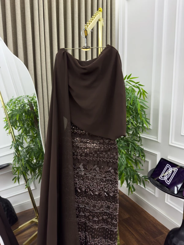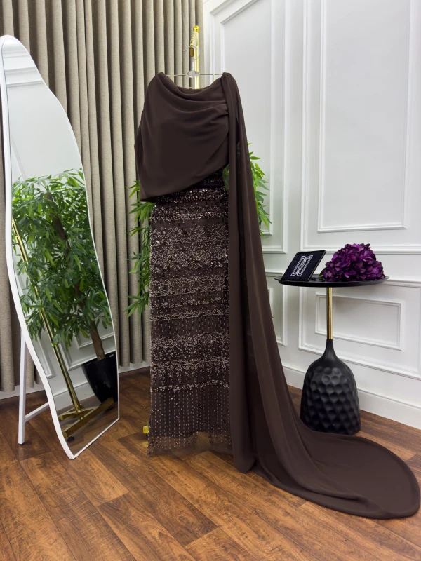 فستان سهرة تل مطرز بخرز وشيفون