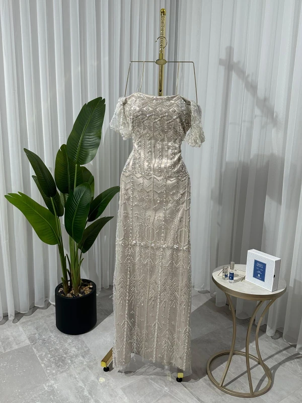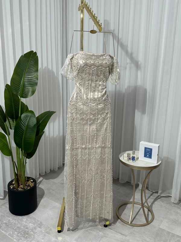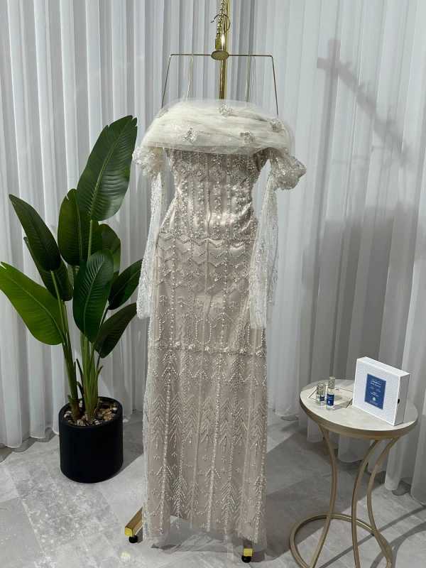 فستان تل سهرة مطرز