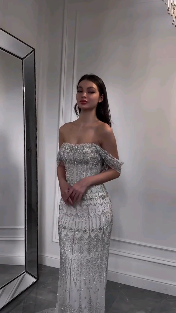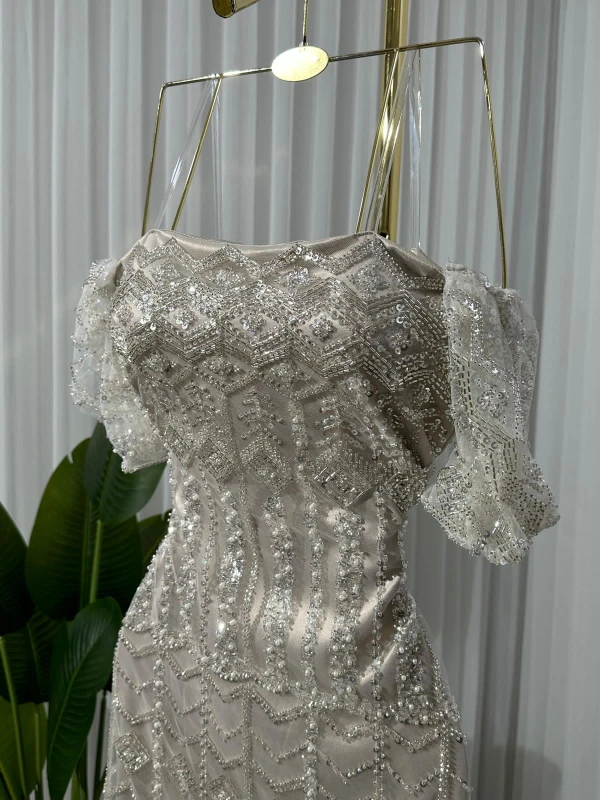 فستان تل سهرة مطرز راقي