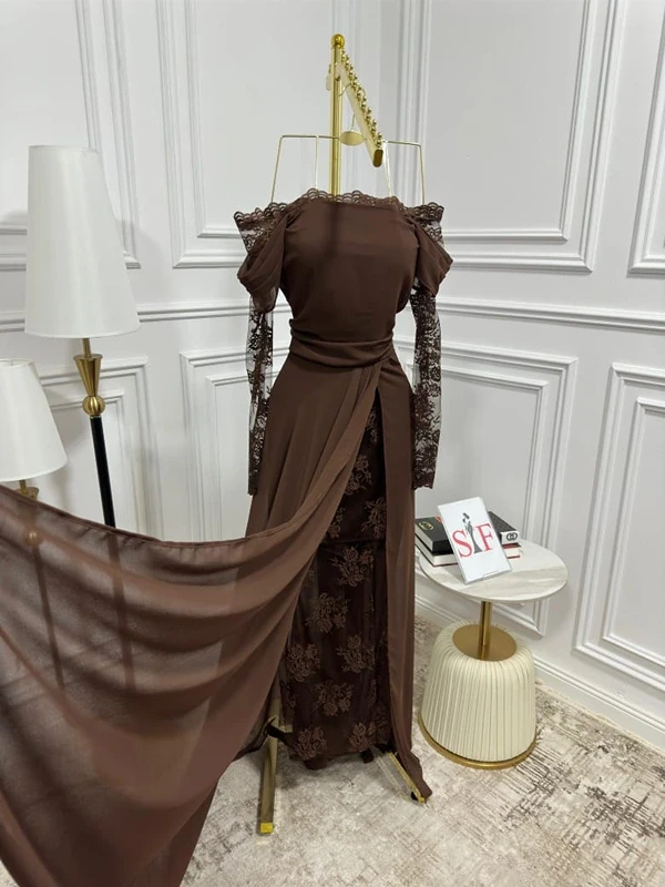 شيفون جورجيت مبطن دانتيل